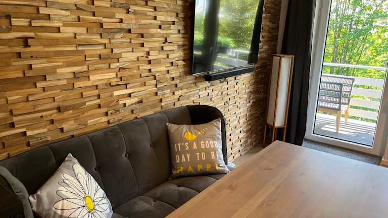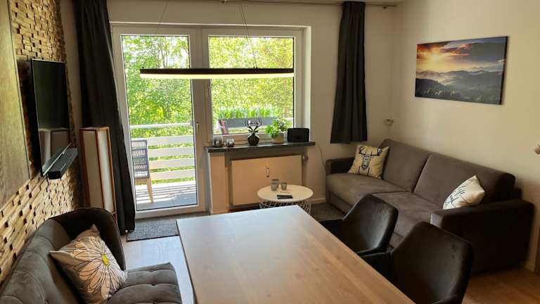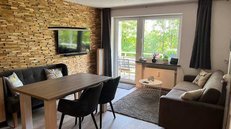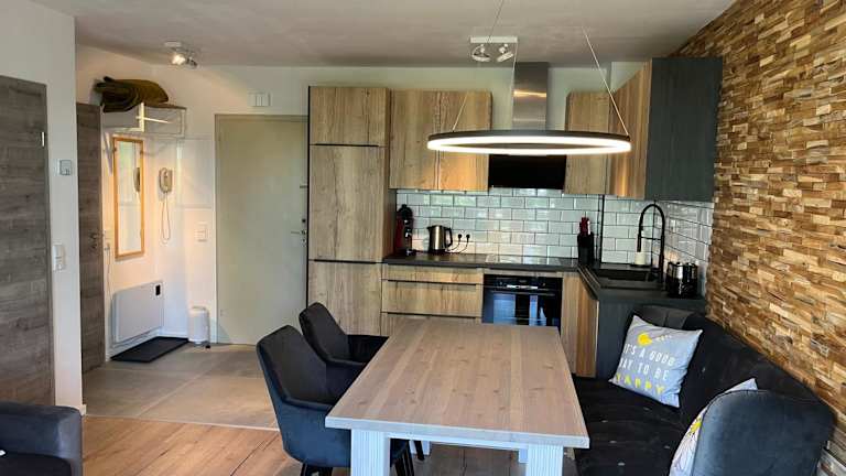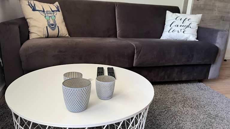 Die Ferienwohnung umfasst ein Schlafzimmer, ein Wohnzimmer und ist ausgestattet mit einem Flachbild-TV sowie einer gut ausgestatteten Küche, die einen Kühlschrank und einen Geschirrspüler beinhaltet. Ein Badezimmer mit Dusche ist ebenfalls vorhanden. Handtücher und Bettwäsche können gegen Aufpreis bereitgestellt werden. Alle öffentlichen und privaten Bereiche sind Nichtraucherzonen.