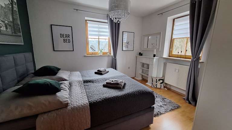 Die Ferienwohnung umfasst 1 Schlafzimmer, ein Wohnzimmer, ein Flachbild-TV, eine gut ausgestattete Küche mit Kühlschrank und Geschirrspüler sowie ein Badezimmer mit Dusche. Handtücher und Bettwäsche stehen den Gästen zur Verfügung.