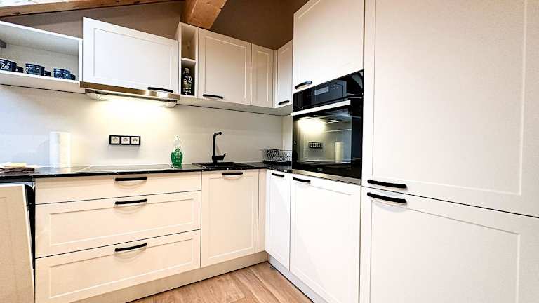 Die Ferienwohnung verfügt über ein Schlafzimmer, ein Wohnzimmer sowie eine gut ausgestattete Küche, die mit einem Kühlschrank und einem Geschirrspüler bestückt ist. Handtücher und Bettwäsche werden bereitgestellt.