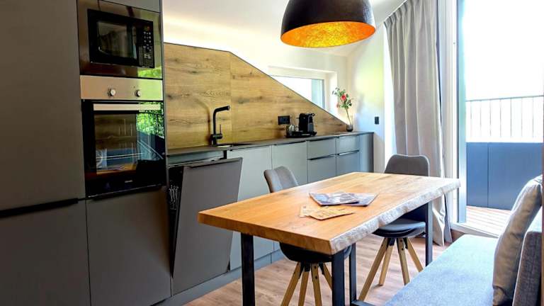 Die Apartments verfügen über eine voll ausgestattete Küche mit Kühlschrank, Geschirrspüler, Ofen, Mikrowelle, Toaster und Wasserkocher, was eine Selbstverpflegung ermöglicht.