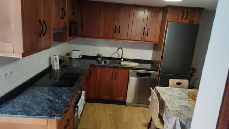 Die Unterkunft ist mit einer voll ausgestatteten Küche ausgestattet, die einen Kühlschrank, einen Geschirrspüler, einen Ofen, eine Mikrowelle, einen Toaster und eine Kaffeemaschine umfasst.