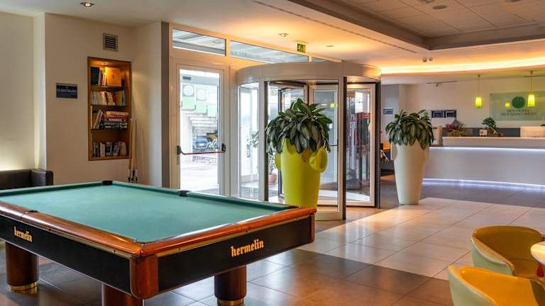 Das Hotel bietet einen Innen- und Außenpool, in denen Sie schwimmen und sich entspannen können. Es gibt auch ein Fitnessstudio, in dem Sie trainieren können. Wenn Sie Golf spielen möchten, können Sie die Golf Indoor-Anlage direkt vom Hotel aus erreichen. Hier finden Sie auch ein Restaurant und eine Pizzeria.