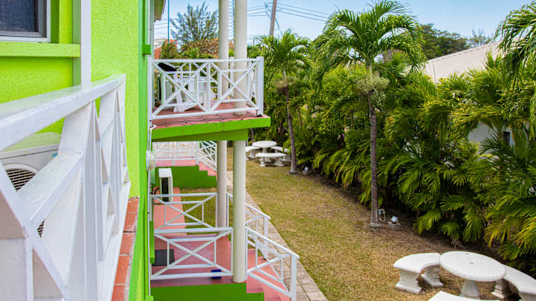 Located in a peaceful neighbourhood on a ridge above Barbados’ famous Platinum West Coast, our Prospect vacation rentals are ideally located for exploring the nearby beaches, restaurants and more. Close proximity to the University of the West Indies, Cave Hill Campus, makes this the ideal accommodation for families visiting UWI students, attending graduations and other events. Our spacious 2-bedroom, 1.5-bathroom vacation rentals offer air-conditioning, fans, laundry facilities, Wi-Fi, cable TV and more. The fully stocked kitchen has everything you need to prepare meals for the whole family: Stove, oven, fridge/freezer, microwave, coffee maker along with pots and pans, flatware and serving ware. Each unit has a private balcony to relax and enjoy the fresh Caribbean breeze. Step outside to enjoy our lush gardens, swimming pool with lounge chairs, BBQ facilities and gazebo with seating area. Our attentive family-run team is here to ensure that your every need is met, whether that’s setting up a crib in advance for your baby or offering advice on exploring Barbados. Daily housekeeping is included during the week. Authentic Bajan meals and car rentals can be arranged at an extra cost