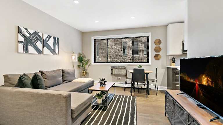 Das Best Studio Apartment Near Boystown! - Oakdale 514 bietet kostenfreies WLAN und eine komfortable Klimaanlage. Es befindet sich in einer günstigen Lage in Chicago, in der Nähe von beliebten Stränden und Sehenswürdigkeiten wie dem Wrigley Field und dem Lincoln Park Zoo. Das Apartment verfügt über eine gut ausgestattete Küche und einen Flachbild-TV. Die Nähe zu öffentlichen Verkehrsmitteln ermöglicht es den Gästen, die Stadt bequem zu erkunden.