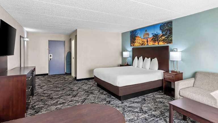 Das Bhagat Hotels Atlanta Cumberland Vinings bietet 117 Zimmer auf 5 Etagen. Jedes Zimmer ist mit einer Klimaanlage, einer Mikrowelle, einem kleinen Kühlschrank und Kaffeezubehör ausgestattet. Ein Schreibtisch ist ebenfalls vorhanden. Das Hotel bietet auch rollstuhlgerechte Einrichtungen. WLAN ist in den öffentlichen Bereichen kostenlos verfügbar. Die Gäste können auch den saisonalen Außenpool und das Fitnesscenter nutzen. Parkplätze stehen kostenfrei zur Verfügung.