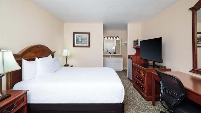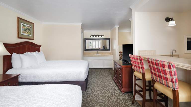 Die Zimmer sind mit Teppichboden ausgestattet und verfügen über ein Doppelbett, Queensize-Bett oder Kingsize-Bett. Zustellbetten sind auf Anfrage erhältlich. Jedes Zimmer bietet eine Kochnische mit Kühlschrank, Mikrowelle und Tee-/Kaffeemaschine. Zur weiteren Ausstattungen gehören ein Schreibtisch, Telefon, TV-Gerät mit Satelliten-/Kabelempfang, WiFi ohne Gebühr sowie ein Badezimmer mit Dusche und Badewanne, Haartrockner, Kosmetikartikeln und Handtüchern. Rollstuhlgerechte Zimmer sind ebenfalls verfügbar.