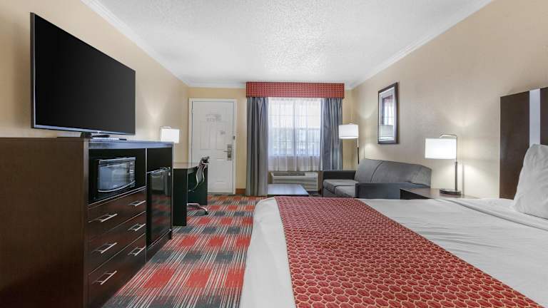 Die Zimmer im Best Western Brady Inn sind komfortabel und gut ausgestattet. Jedes Zimmer verfügt über einen Flachbild-Kabel-TV für Unterhaltung und WLAN für den Zugang zum Internet. Zur weiteren Ausstattung gehören eine Kaffeemaschine, eine Mikrowelle und ein Kühlschrank, um Ihren Aufenthalt so angenehm wie möglich zu gestalten. Ein eigenes Bad mit einem Haartrockner und ein Bügeleisen/-brett sind ebenfalls vorhanden.