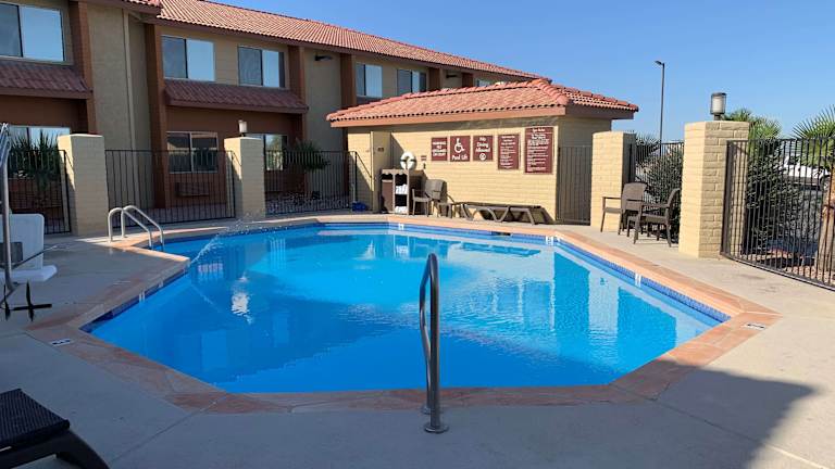 Das Best Western Desert Oasis in Ehrenberg bietet Ihnen einen komfortablen Aufenthalt mit einem ganzjährig geöffneten Außenpool und kostenfreiem WLAN. Genießen Sie ein reichhaltiges Frühstücksbuffet und nutzen Sie die Annehmlichkeiten wie das Fitnesscenter und das Businesscenter. Das Hotel bietet auch einen Manager-Empfang mit verschiedenen Speisen und Getränken. Die Zimmer sind klimatisiert und mit modernen Annehmlichkeiten ausgestattet. Das Hotel liegt in der Nähe des Blythe Speedway und des Golfplatzes Blythe Municipal, und das Stadtzentrum von Blythe ist nur eine kurze Fahrt entfernt.