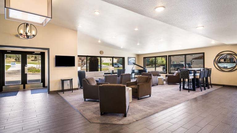 Das Best Western Golden Spike Inn & Suites in Hill City, South Dakota, bietet seinen Gästen eine komfortable Unterkunft mit Innen- und Außenpools sowie kostenlosem WLAN. Morgens erwartet Sie ein reichhaltiges Frühstück, und das Hotel befindet sich in günstiger Lage, nur 20 Autominuten vom Mount Rushmore entfernt. Die Zimmer sind klimatisiert und mit Kabel-TV ausgestattet. Zu den weiteren Annehmlichkeiten gehören ein Fitnesscenter und ein Whirlpool. Das Crazy Horse Memorial ist ebenfalls in der Nähe, und im Black Hills National Forest, der nur 17 Autominuten entfernt liegt, können Sie wandern und campen.