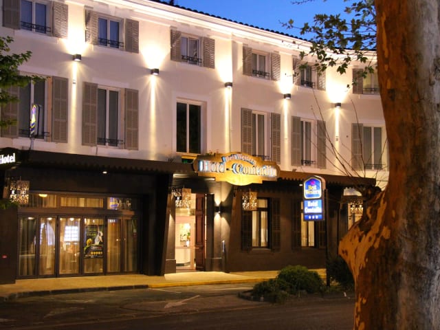 Das Best Western Le Comtadin in Carpentras ist ein wunderschön restauriertes Hotel in einem historischen Gebäude. Die Lage in der Altstadt von Carpentras und die Nähe zum Mont Ventoux machen es zu einem idealen Ausgangspunkt, um die Provence und den Luberon zu erkunden. Die Zimmer im provenzalischen Stil bieten modernen Komfort und eine gemütliche Atmosphäre. Genießen Sie das täglich servierte Frühstück im ruhigen Innenhof und entspannen Sie in der Loungebar. Das Hotel ist auch gut für Ausflüge in die Umgebung geeignet, da der Bahnhof Carpentras nur 500 m entfernt liegt.