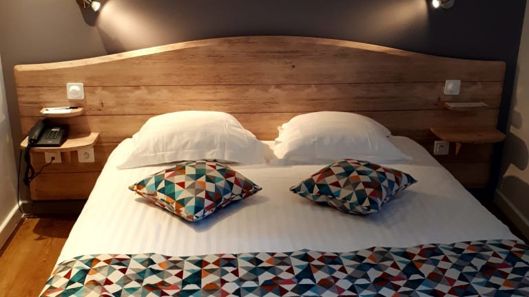 Das Hotel verfügt über 35 Zimmer, die sich auf 3 Etagen verteilen. Die Zimmer sind über einen Aufzug erreichbar und bieten modernen Komfort in einer charmanten Umgebung. Sie sind schallisoliert und mit Sat-TV, kostenfreiem WLAN und einer Klimaanlage ausgestattet. Einige Zimmer verfügen über einen Balkon. Familien- und Nichtraucherzimmer sind ebenfalls verfügbar.