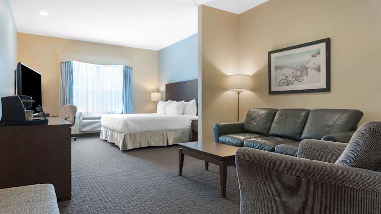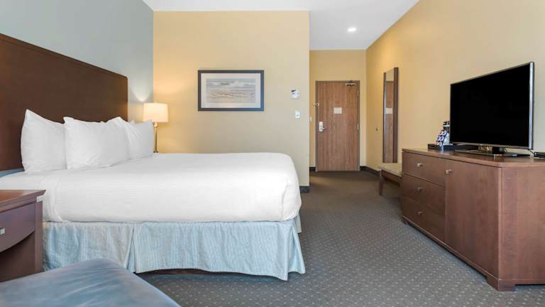Die Zimmer im Best Western Plus Liverpool Hotel & Conference Centre sind komfortabel und modern eingerichtet. Jedes Zimmer verfügt über Annehmlichkeiten wie einen 42-Zoll-Plasma-TV, einen DVD-Player, einen Kühlschrank und kostenfreies WLAN. Für zusätzlichen Komfort gibt es auch einen Schreibtisch und einen Sessel.