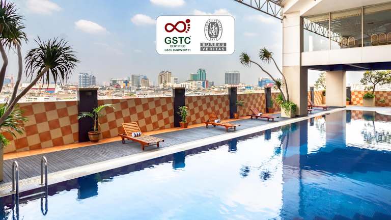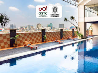Das Hotel bietet 8 Suiten und 160 Doppelzimmer auf insgesamt 33 Etagen. Die Zimmer sind in natürlichen Farben gehalten und verfügen über eine Klimaanlage sowie Parkettboden. Zur Ausstattung gehören ein Kabel-TV, ein Mini-Kühlschrank und Kaffee- und Teezubehör. Einige Zimmer bieten zudem einen schönen Stadtblick. Das private Badezimmer verfügt über einen Haartrockner und eine Warmwasserdusche.