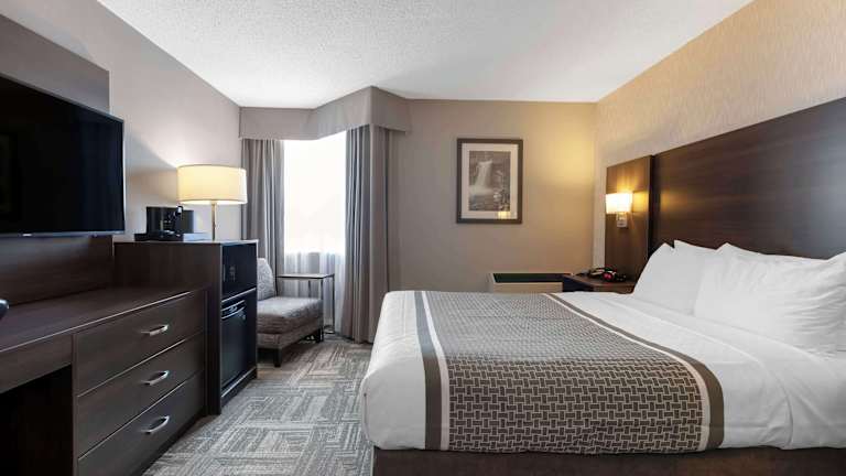 Die Zimmer im Best Western Milton Inn sind geräumig und modern eingerichtet. Jedes Zimmer verfügt über einen Flachbild-Kabel-TV, einen Kühlschrank, eine Mikrowelle und eine Kaffeemaschine. Kostenloses WLAN und eine gemütliche Einrichtung mit dunklen Holzmöbeln sorgen für ein angenehmes Ambiente.