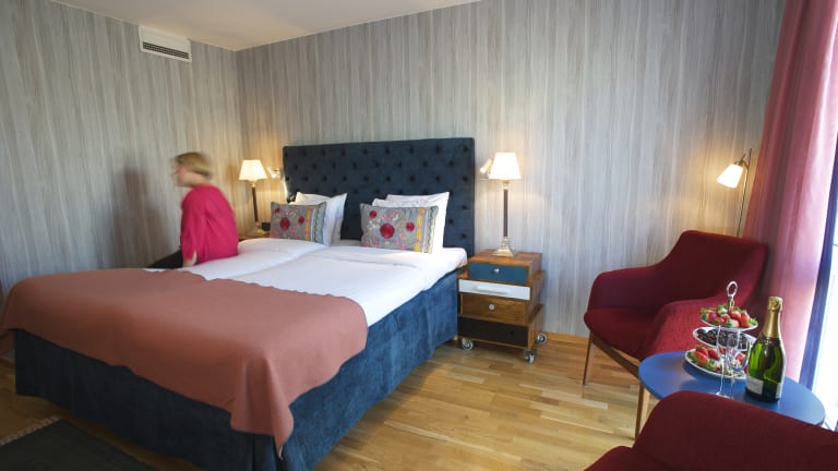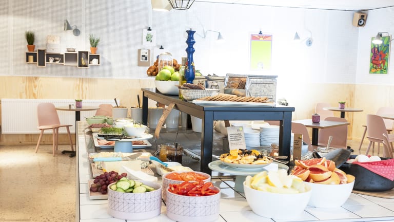 Das Hotel verfügt über ein Restaurant, in dem täglich ein Frühstücksbuffet serviert wird. Die Bar Tavernan mit Lounge bietet Speisen und Getränke in einer gemütlichen Atmosphäre an. Kostenloser Kaffee und Tee stehen den Gästen rund um die Uhr zur Verfügung.