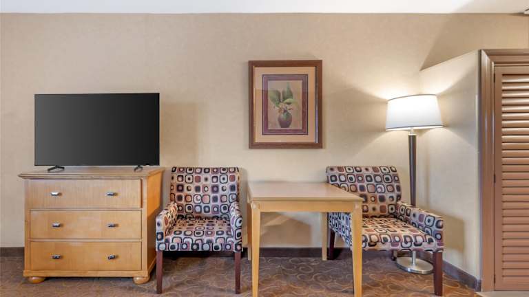 Das Best Western Plus Pavilions in Anaheim bietet eine ideale Lage für einen Besuch im Disneyland Resort und im Anaheim Convention Center. Die Zimmer sind komfortabel ausgestattet und verfügen über Mikrowelle und Kühlschrank. Das Hotel verfügt über einen Außenpool und einen Whirlpool, und Gäste können ein kostenloses Frühstück in einem nahegelegenen Restaurant genießen. Die Unterkunft bietet auch einen 24-Stunden-Rezeptionsservice sowie eine chemische Reinigung und einen Wäscheservice. Die Innenstadt von Los Angeles und Laguna Beach sind ebenfalls gut erreichbar.