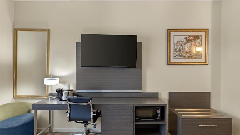 Die Zimmer im Best Western Jamaica Inn sind komfortabel und modern eingerichtet. Jedes Zimmer verfügt über Annehmlichkeiten wie eine Mikrowelle, einen Kühlschrank und einen Flachbild-Kabel-TV. Die klimatisierten Zimmer bieten auch einen Schreibtisch und kostenloses WLAN.