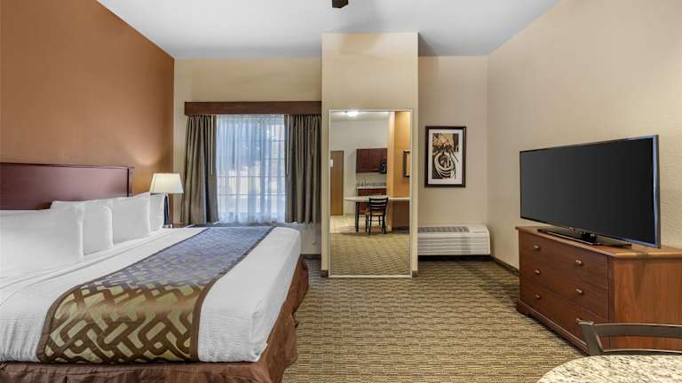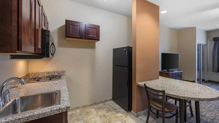 Die 60 Zimmer des Best Western North Edge Inn sind auf 3 Etagen verteilt und über einen Aufzug erreichbar. Die Zimmer sind klimatisiert und verfügen über einen TV und einen gemütlichen Sitzbereich. Jedes Zimmer hat auch eine komplett ausgestattete Küchenzeile mit einem Kochfeld, einer Mikrowelle und einer Kaffeemaschine. Das eigene Bad ist mit einer Badewanne oder einer Dusche, einem Haartrockner und kostenfreien Pflegeprodukten ausgestattet.