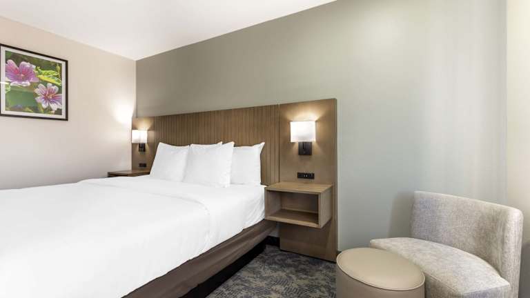 Die Gästezimmer sind klimatisiert und verfügen über ein Doppelbett, ein Queensize-Bett oder ein Kingsize-Bett. Zustellbetten sind auf Anfrage verfügbar. Zur Ausstattung gehören ein Schreibtisch, ein Kühlschrank, eine Mikrowelle, eine Tee- und Kaffeemaschine sowie ein Bügelset. Jedes Zimmer verfügt über ein eigenes Badezimmer mit Dusche. Des Weiteren sind Sat-TV, kostenloses WLAN und ein Haartrockner vorhanden. Rollstuhlgerechte Zimmer stehen ebenfalls zur Verfügung.