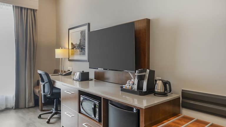 Das Best Western Plus East Side in Saskatoon bietet eine komfortable Unterkunft mit kostenfreiem WLAN und einem breiten Angebot an Annehmlichkeiten. Genießen Sie den Pool, die Wasserrutsche und den Whirlpool, während Sie jeden Morgen ein köstliches Frühstück serviert bekommen. Das Hotel verfügt auch über ein Fitnesscenter und eine rund um die Uhr besetzte Rezeption. Die Lage ist ideal, da die University of Saskatchewan und das Royal University Hospital in der Nähe liegen. Der Flughafen J G Diefenbaker ist ebenfalls gut erreichbar.