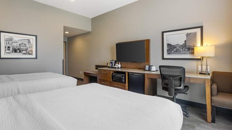 Die Zimmer im Best Western Plus East Side sind komfortabel und modern eingerichtet. Kostenloses WLAN ist in allen Bereichen verfügbar. Das Hotel verfügt auch über einen Pool, eine Wasserrutsche und einen Whirlpool, in denen Sie sich entspannen und erfrischen können. Für diejenigen, die gerne aktiv bleiben möchten, steht ein Fitnesscenter zur Verfügung. Die Unterkunft bietet außerdem eine 24-Stunden-Rezeption, um Ihren Aufenthalt so angenehm wie möglich zu gestalten.