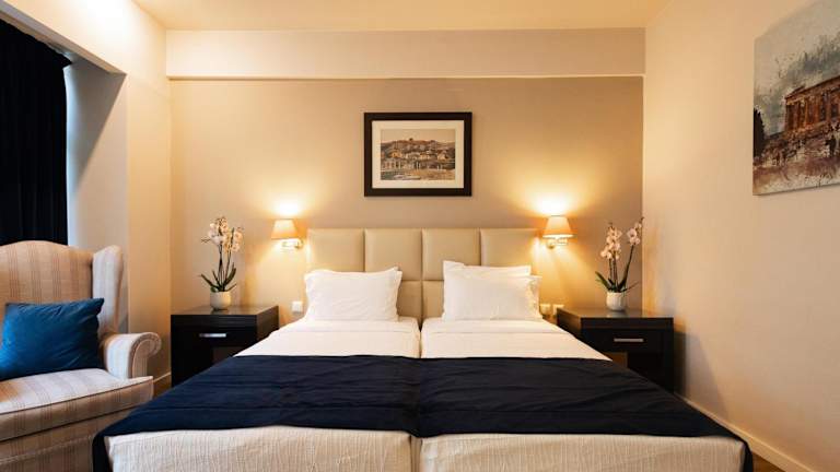Das Hotel befindet sich im Stadtzentrum von Athen und bietet Blick auf den Lycabettus-Hügel. Es liegt in einer sicheren Umgebung in der Nähe der amerikanischen Botschaft und ist weniger als zehn Gehminuten vom Athener Tower entfernt. Die Metrostationen Megaro Mousikis und Ambelokipi erreichen Sie in jeweils 300 und 250 Metern.