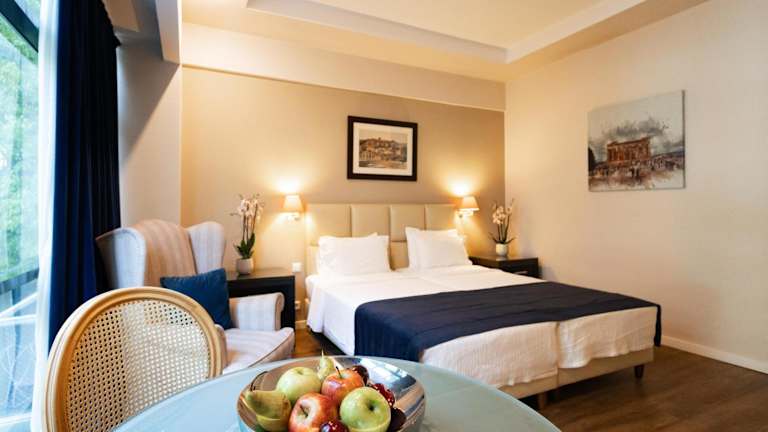 Die Zimmer und Suiten des Hotels sind in unterschiedlichen Größen verfügbar und mit einem Flachbildfernseher und Klimaanlage ausgestattet. Außerdem steht in jedem Zimmer ein Wasserkocher für Tee und Kaffee zur Verfügung. Die Zimmer sind schallisoliert und es gibt Nichtraucher- sowie Gemeinschaftsbereiche.