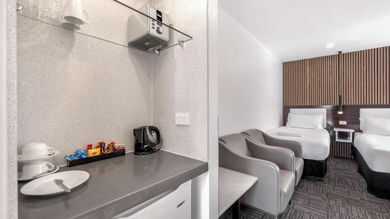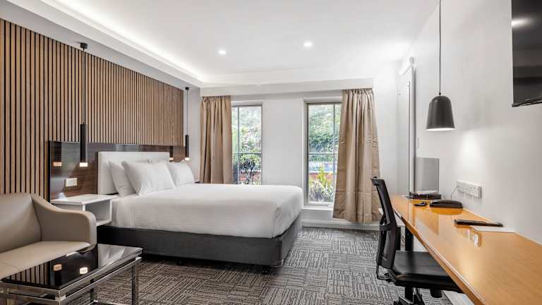 Die Zimmer sind mit Klimaanlage, Heizung, einem Safe, einer Minibar, einem Schreibtisch, einer Mikrowelle und Tee-/Kaffeezubereiter ausgestattet. Zur weiteren Ausstattung gehören ein Kühlschrank, ein Bügelset, ein Direktwahltelefon, ein 42-Zoll-Flachbildfernseher sowie kostenloses WLAN. Die Badezimmer sind mit einer Dusche, Badewanne und Kosmetikartikeln ausgestattet. Rollstuhlgerechte Zimmer sind ebenfalls verfügbar.