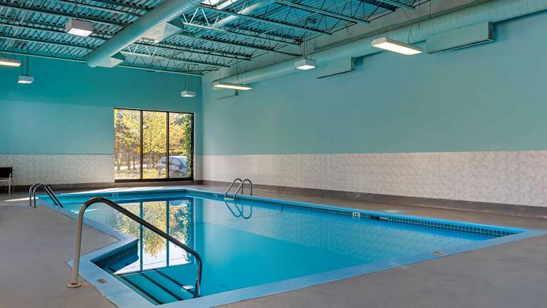 Zu den Freizeitmöglichkeiten zählen ein beheizbarer Innenpool und ein Fitnessraum. Zudem werden Aktivitäten wie Wandern, Radfahren und Skifahren angeboten. Liegestühle stehen im Bereich des Pools bereit, um die Sonne zu genießen.