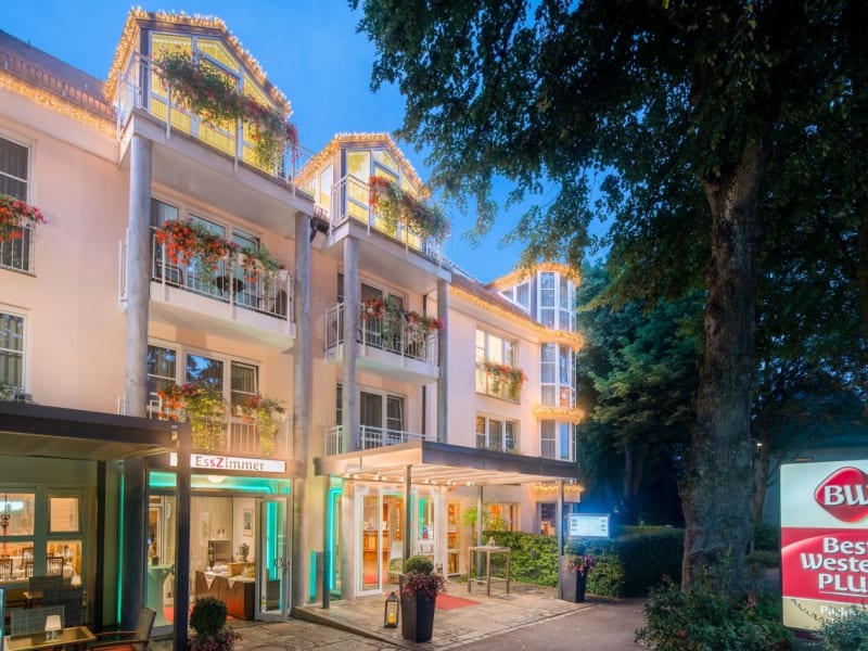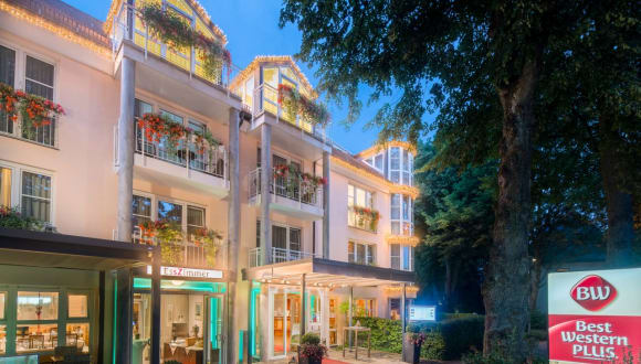 Das Best Western Plus Parkhotel Erding befindet sich direkt gegenüber dem Bahnhof Erding und ist somit ideal für Reisende, die mit öffentlichen Verkehrsmitteln anreisen möchten. Die Lage im Zentrum von Erding bietet eine gute Anbindung an die Münchner Innenstadt und den Flughafen München. In der Umgebung finden Sie zahlreiche Geschäfte, Restaurants und Sehenswürdigkeiten. Die weltberühmte Brauerei Erdinger Weissbräu ist ebenfalls einen Besuch wert.