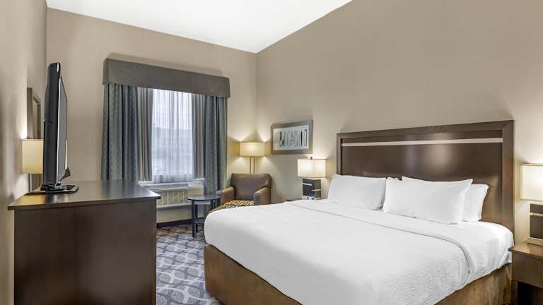 Das Best Western Plus Travel Hotel Toronto Airport liegt nur 5 km vom internationalen Flughafen Toronto-Pearson entfernt. Es bietet eine bequeme Anbindung an die öffentlichen Verkehrsmittel von Toronto und Mississauga sowie an die Hauptverkehrsstraßen und Autobahnen. In der Nähe des Hotels finden Sie Restaurants, Bars und Einkaufsmöglichkeiten.