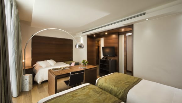 Nächtigen Sie in einem der bequem eingerichteten Wohneinheiten (Familienzimmer und Hochzeitssuite) dieses Hotels. An jedem Zimmer ist ein Badezimmer angeschlossen. Im Badezimmer finden Sie: Badewanne oder Dusche, Bademantel, Haartrockner, Toilettenartikel und Hausschuhe. Ein komfortabler Sitzbereich bietet Ihnen die Möglichkeit, abzuschalten. Die Ausstattung der Wohneinheiten beinhaltet eine Minibar, einen Safe sowie einen Schreibtisch. Es erwartet Sie eine Kaffeemaschine. Das Zimmerinventar beinhaltet ein Telefon, ein Radio sowie einen Fernseher. Im Buchungsumfang ist ein kostenfreies Mineralwasser als Aufmerksamkeit des Hotelteams inkludiert. Zusätzlich sind behindertenfreundliche Zimmer, Allergikerzimmer und schallisolierte Zimmer erhältlich.
