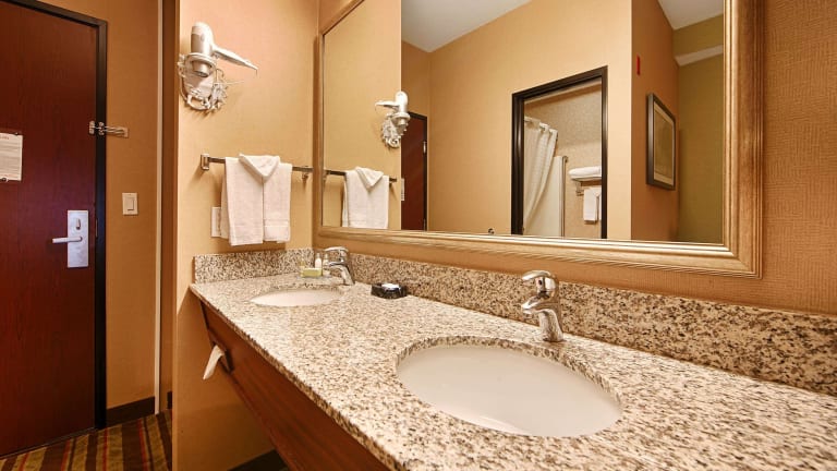 Die Zimmer im Best Western Wilsonville Inn & Suites sind modern eingerichtet und bieten eine komfortable Ausstattung. Jedes Zimmer verfügt über eine Klimaanlage, eine Mikrowelle, einen Kühlschrank und einen TV. Das eigene Bad ist mit einer Badewanne oder einer Dusche ausgestattet.