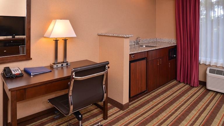 Das Best Western Wilsonville Inn & Suites in Wilsonville bietet seinen Gästen einen angenehmen Aufenthalt mit einer Vielzahl von Annehmlichkeiten. Von einem Innenpool und einem Whirlpool über ein Fitnesscenter bis hin zum kostenfreien WLAN ist alles vorhanden, um Ihren Aufenthalt komfortabel zu gestalten. Zudem können Sie sich jeden Morgen über ein kostenloses Frühstück freuen. Die modernen Zimmer sind klimatisiert und mit einer Mikrowelle, einem Kühlschrank und einem TV ausgestattet. Das Hotel bietet außerdem kostenfreie Parkplätze, eine 24-Stunden-Rezeption und ein Businesscenter. Die Lage des Hotels ist ideal, da es nur wenige Fahrminuten von Sehenswürdigkeiten wie dem Clackamas Community College und dem Golfclub Charbonneau entfernt liegt. Der internationale Flughafen Portland ist ebenfalls gut erreichbar, etwa 47 km entfernt.