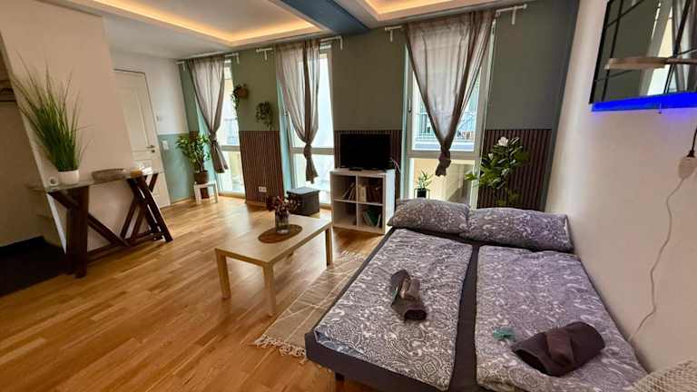 Die Unterkunft Beste Lage - TOP-Apartment - Leipzig Hotspot No1 bietet Übernachtungsmöglichkeiten in einer Ferienwohnung, die mit kostenlosem WLAN und einem Flachbild-TV ausgestattet ist. Ein Check-in ist ab 15:00 bis 23:00 Uhr möglich, während der Check-out bis 11:00 Uhr erfolgen sollte. Die Unterkunft ist zudem ein Nichtraucherbereich und für Haustiere auf Anfrage geöffnet. Junggesellenabschiede oder ähnliche Feiern sind nicht gestattet. Das Mindestalter für den Check-in beträgt 18 Jahre.