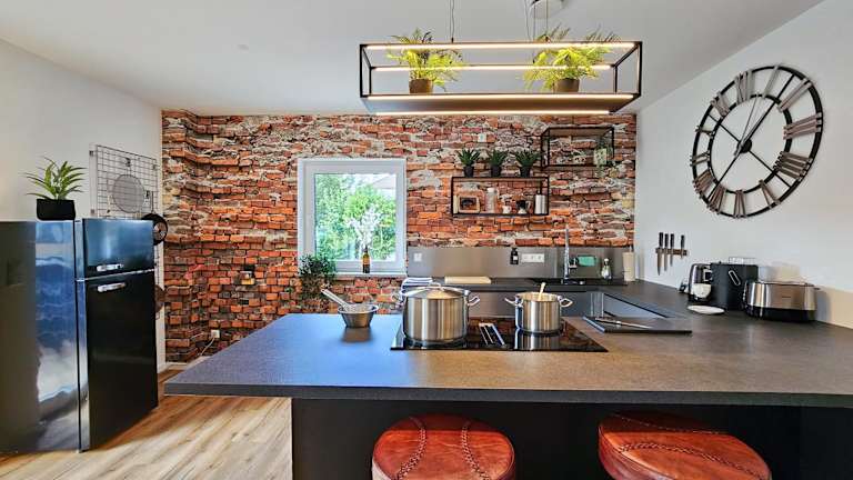 BETTER l industriaI apartment l Heimkino ist eine Ferienwohnung im Erdgeschoss mit einer Veranda und Balkon. Die Unterkunft bietet einen kostenlosen Privatparkplatz und kostenfreies WLAN. Die Innenausstattung umfasst ein Wohnzimmer und eine gut ausgestattete Küche sowie ein Badezimmer mit Dusche und Badewanne. Handtücher und Bettwäsche werden bereitgestellt.