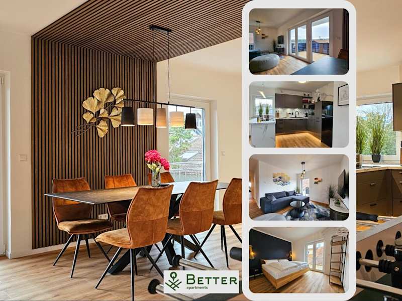 Die Unterkunft BETTER l modern apartment l Tischkicker bietet eine moderne Ausstattung in Form einer Ferienwohnung mit einer Veranda/Patiou. Die Unterkunft wird von einem privaten Gastgeber geleitet und richtet sich an Gäste ab 18 Jahren, mit einer klaren Regelung gegen Junggesellen- oder Junggesellinnenabschiede. Haustiere sind nicht gestattet.