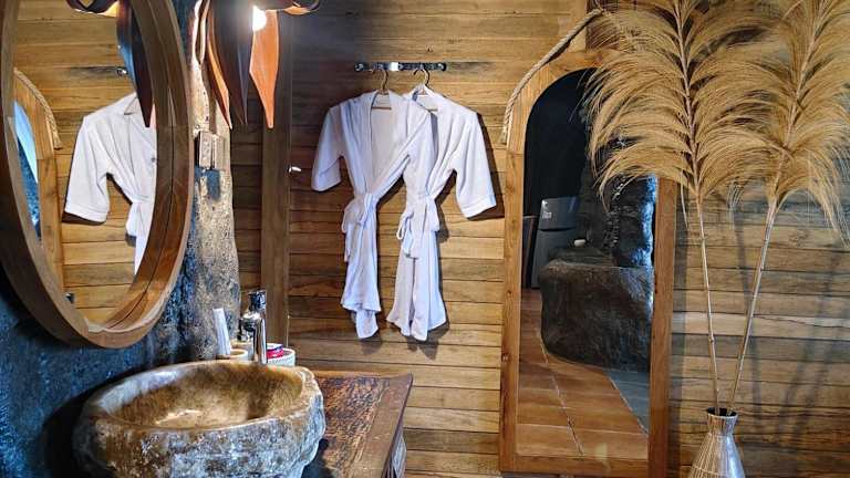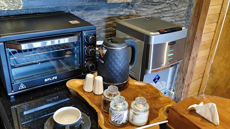 Die Villa umfasst ein Schlafzimmer und eine voll ausgestattete Küchenzeile. Zusätzlich ist ein Flachbild-TV vorhanden.