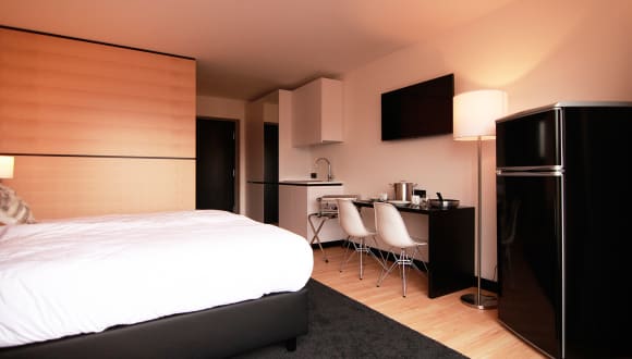 Wohnen auf Zeit - Ob als Monteur, Tourist, Student oder Geschäftsmann, die durchdachten Apartments mit eigenem Bad, ausgestatteter Küche, sowie Fernseher & WLAN, bieten optimalen Komfort.