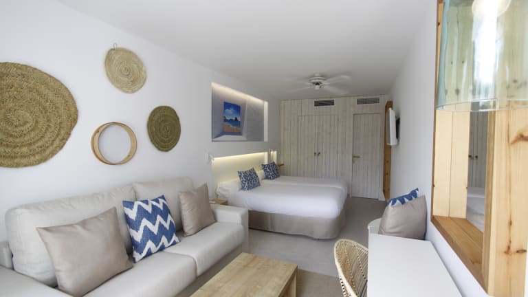 Das Hotel befindet sich in Cala Portinatx, einer Region bekannt für einige der besten Buchten im Mittelmeer. Der nordliche Teil von Ibiza zeichnet sich durch kristallklares Wasser aus, ideal für eine Vielzahl von Wasseraktivitäten. Der Flughafen Ibiza International Airport ist ca. 35 km entfernt, während das Ortszentrum in etwa 1 km erreichbar ist. Der Strand besteht aus Sand und Kies.