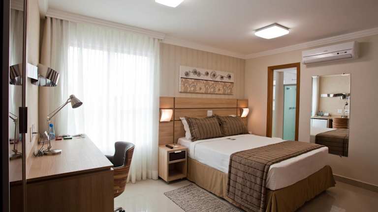 Die Zimmer im BH Jaraguá Hotel - Antes Bristol sind modern eingerichtet und verfügen über Klimaanlage, einen 32-Zoll-LCD-TV, eine Minibar, einen Schreibtisch und einen Safe. Das Badezimmer ist gut ausgestattet und bietet einen Haartrockner.