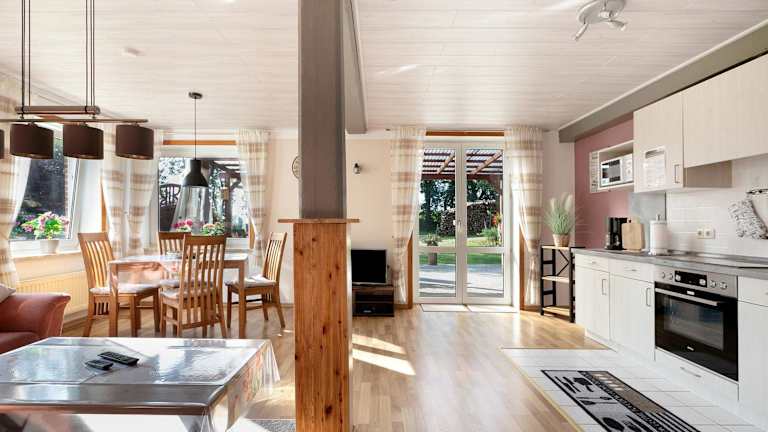 Bi Tiessens to Hus bietet eine Ferienwohnung mit Gartenblick und einem Zugang zur Veranda / Patio. Die Unterkunft ist umgeben von einem Garten, der Grillmöglichkeiten bietet.