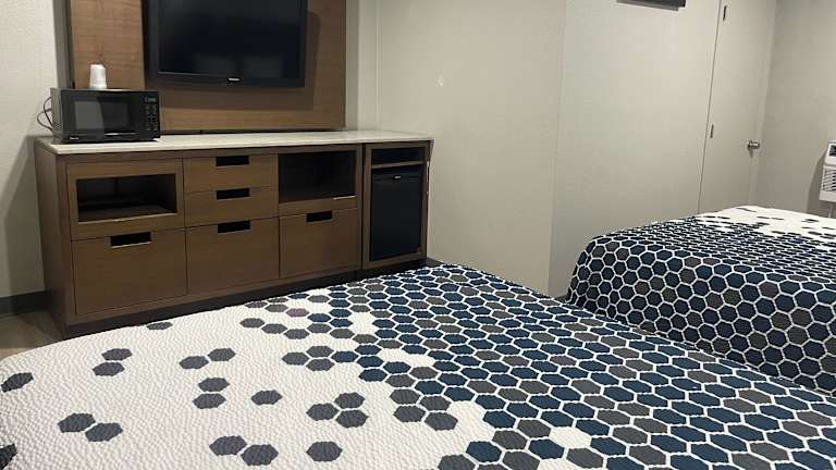 Die Zimmer des Motels sind mit Klimaanlage, einem Queensizebett und einem Sofabett ausgestattet. Eine Kochnische mit Kühlschrank und Tee-/Kaffeemaschine ist ebenfalls vorhanden. Zusätzlich sind ein Telefon, ein TV-Gerät sowie kostenfreies WLAN verfügbar. Es können auch Zustellbetten angefordert werden. Das Motel bietet sowohl Nichtraucher- als auch Raucherzimmer an. Rollstuhlgerechte Zimmer sind ebenfalls buchbar.