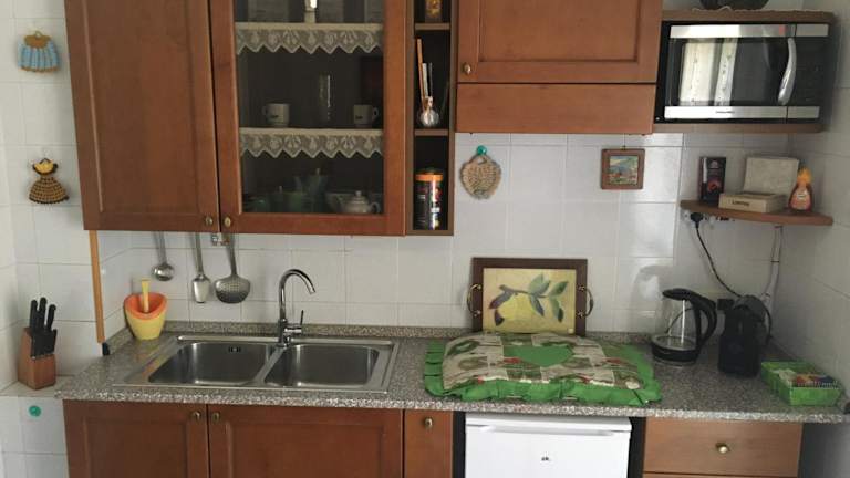 Die Unterkunft verfügt über ein Schlafzimmer und ein Wohnzimmer mit einem Flachbild-TV. In der gut ausgestatteten Küche sind ein Kühlschrank und eine Mikrowelle vorhanden. Das Bad ist mit einem Bidet ausgestattet. Zudem stehen den Gästen Handtücher und Bettwäsche zur Verfügung. Der Balkon bietet einen Blick auf die Berge.