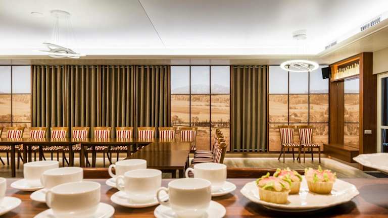 Das Frühstück wird in Form eines Buffets im Speisesaal angeboten. Es besteht die Möglichkeit, Speisen auf das Zimmer zu bestellen. Für Kinder werden spezielle Mahlzeiten angeboten. Ein Café befindet sich ebenfalls im Hotel.