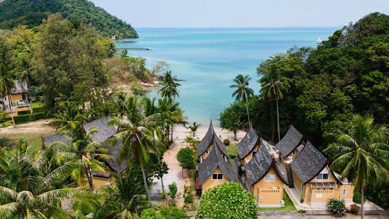 Die Unterkunft Bikini Villas Koh Chang liegt in Ko Chang, nur wenige Schritte vom Klong Son Strand entfernt. Wat Klong Son befindet sich in einer Entfernung von etwa 2,6 km. Der Flughafen Trat ist 34 km von der Unterkunft entfernt und somit gut erreichbar.