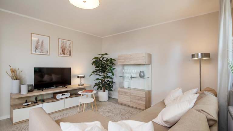 Die Ferienwohnung verfügt über 1 Schlafzimmer, ein Wohnzimmer, einen Satelliten Flachbild-TV und eine gut ausgestattete Küche. Zudem sind ein Badezimmer mit Dusche und Badewanne sowie Handtücher und Bettwäsche verfügbar.
