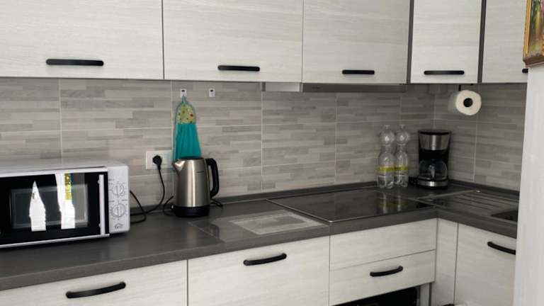 Eine voll ausgestattete Küche mit Kühlschrank und Kaffeemaschine ist vorhanden. Es sind keine spezifischen Informationen zu Verpflegungsmöglichkeiten bereitgestellt.
