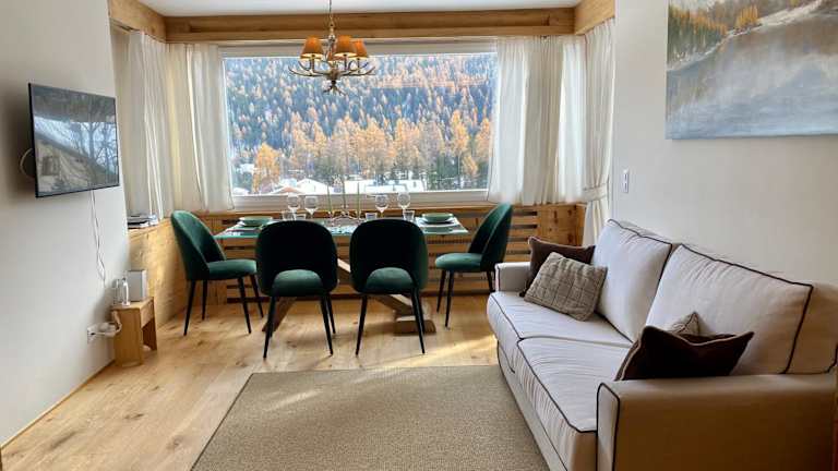 Die Unterkunft befindet sich in St. Moritz, 1,9 km entfernt vom Bahnhof St. Moritz. Die Lage bietet einen direkten Zugang zur Skipiste und die Möglichkeit, die umliegende Landschaft, die zum Skifahren einlädt, zu genießen.