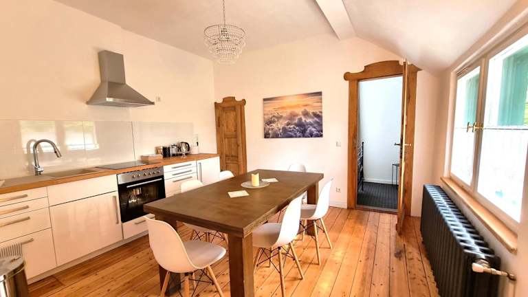 Das Binderburg, Jena ist eine Ferienwohnung, die Unterkünfte mit Gartenblick, einer Terrasse, einem Wohnzimmer, einer gut ausgestatteten Küche sowie einem Badezimmer mit Badewanne bietet. Die Unterkunft ist privat geführt und bietet Annehmlichkeiten wie kostenloses WLAN und einen privaten Parkplatz. Übernachtungen sind ab 16:00 Uhr bis 20:00 Uhr möglich, während der Check-out zwischen 08:00 Uhr und 11:00 Uhr erfolgt. Es sind keine Feiern wie Junggesellenabschiede gestattet.